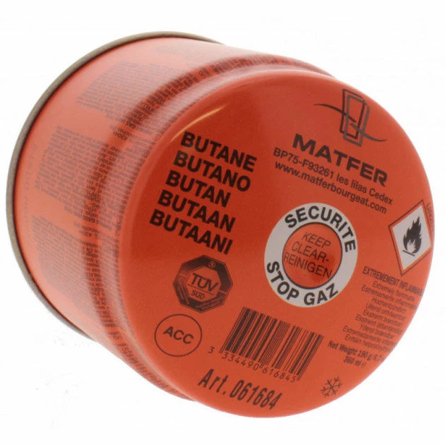 Cette Cartouche de Gaz (butane) Stop Gaz est une recharge compatible pour le Chalumeau à gaz Matfer (vendu séparément).