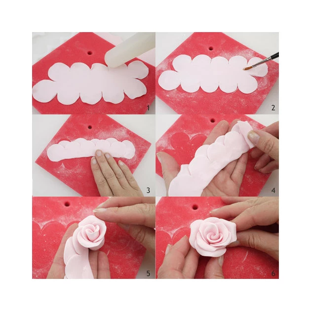 - Permet de réaliser des Roses en pâte à sucre de 4 tailles : 20, 25, 50 et 70 mm