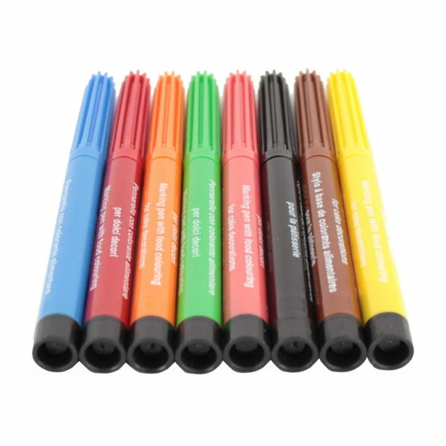 Ce lot de feutres alimentaires Florensuc contient 8 feutres de couleurs différentes ! L’encre de ces feutres est totalement comestible et est idéal pour écrire et dessiner sur toutes vos pâtisseries et la pratique du Cake Design ! Pâte à sucre, Gâteaux, cookies, biscuits, macarons, mignardises, cupcakes… Tout est maintenant personnalisable ! Ces stylos alimentaires conviennent également pour dessiner sur les feuilles d’azyme, les stickers alimentaires ou même sur le fond d’une assiette. Transformez les repas, les anniversaires et les goûters créatifs en autant de moments magiques :