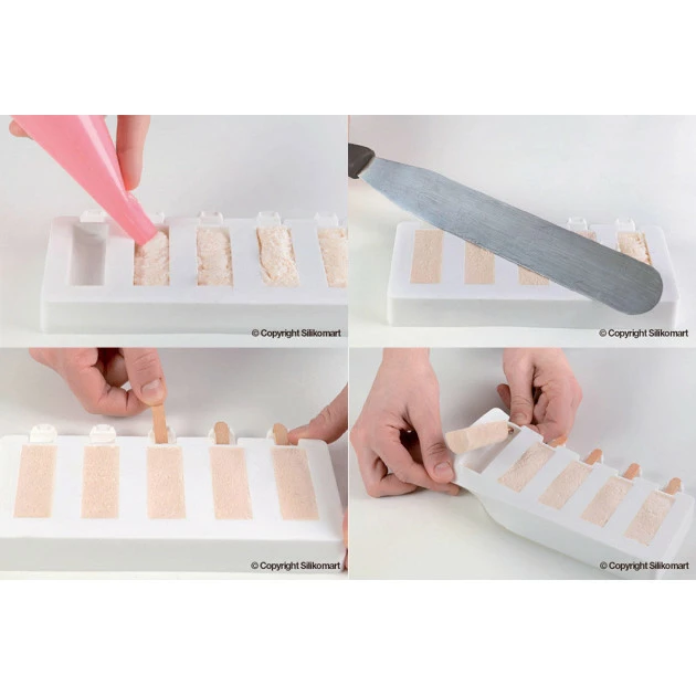 Moule à glace silicone 10 barres arrondies avec bâtonnets SilikoMart