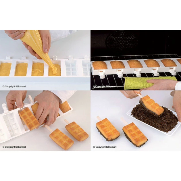 Ce moule silicone vous permet de réaliser des glaces, mais pas que. Résistant à des températures allant de -60°C à 230°C, vous pouvez l’utiliser au réfrigérateur, au congélateur mais aussi au four ou au micro-onde. Il vous permettra de réaliser de délicieux gâteaux en formes de tablettes de chocolat à déguster directement sur le bâtonnet. Les petits comme les grands en auront l’eau à la bouche !