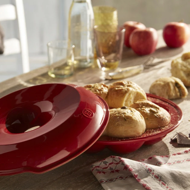 Le moule à pain Emile Henry supporte les températures allant jusqu’à 270°C et permet de réaliser 8 petits pains. Il est largement recommandé pour réaliser des pains aux graines, aux olives, mais aussi des brioches aux pépites de chocolat ou tout simplement au sucre !