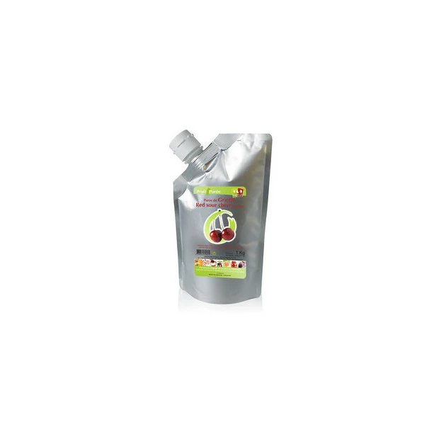 – Une purée de Cerise griotte parfaitement tamisée. Pour une utilisation directe (siphon) après avoir bien secoué la poche.