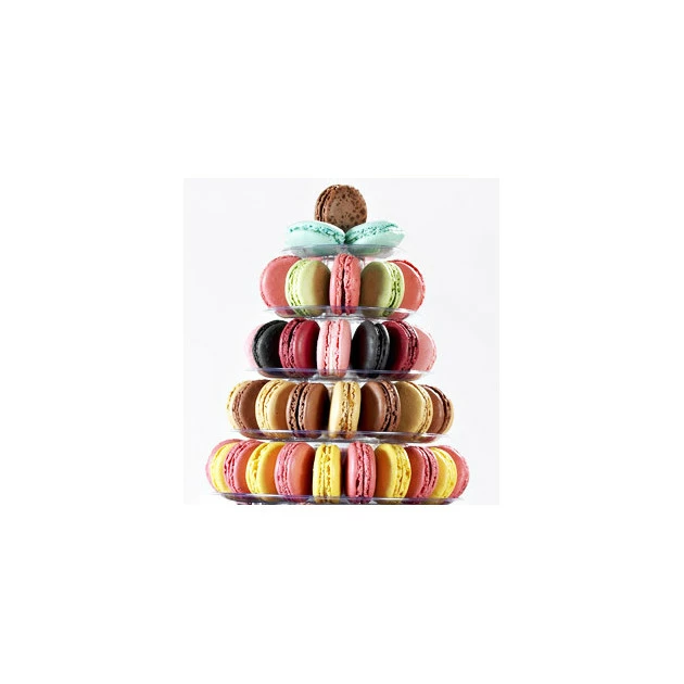 Nouvelle Pyramide à Macaron avec présentation vertical des macarons. Composé de 10 plateaux amovibles, ce nouveau concept permet de réaliser des pyramides de macarons de différentes hauteurs sans les piquer, ni les coller.